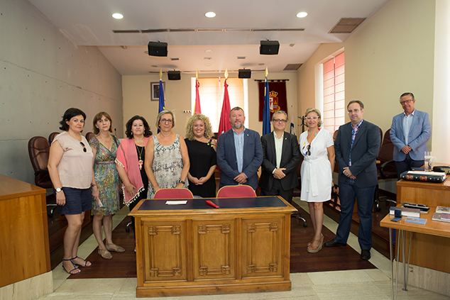 Alcaldes y concejales de las dos ciudades tras la firma del protocolo de amistad.