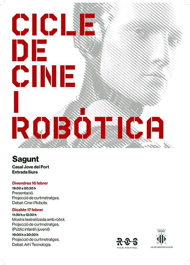 El Casal Jove del Port de Sagunt acollirà el 16 i 17 de febrer un “Cicle de Cinema i robòtica’ amb la projecció de 20 curtmetratges en els quals els protagonistes seran els robots. Tots els curtmetratges han participat en el ROS Film Festival, el primer festival internacional de curtmetratges amb temàtica robòtica. La iniciativa l'ha posat en marxa la regidoria de Joventut per a crear un nou espai de diàleg entre art, tecnologia i societat.