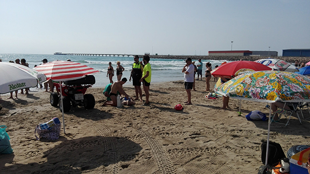 Al voltant de les 13.45 hores, un xiquet va alertar els socorristes que hi havia un grup de persones en l'aigua que semblava estar en problemes. El dron va ser el primer a arribar i, efectivament, hi havia un grup de 5 persones a les quals els havia arrossegat el corrent i no podien eixir pel seu propi peu. Tot seguit, el dron va llançar un flotador que els va permetre aguantar fins que de seguida van arribar els socorristes.
