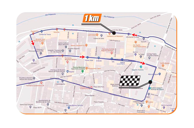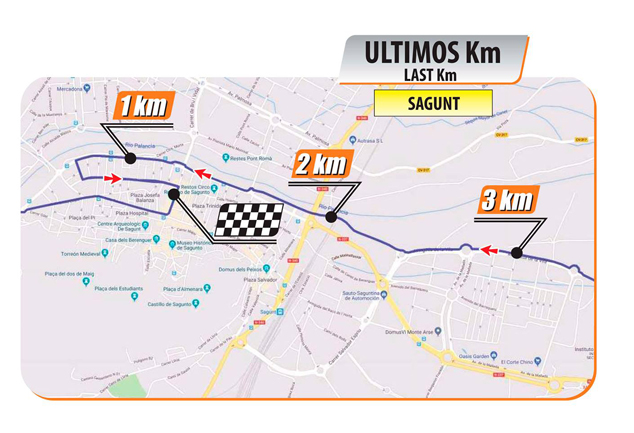 A Sagunt passarà per l'avinguda Sants de la Pedra, Sant Cristófol, l'avinguda Dr. Palos, el carrer Horts i la plaça del Cronista Chabret, on estarà situada la meta. En finalitzar la prova, sobre les 14.30 hores, s'entregaran els trofeus.