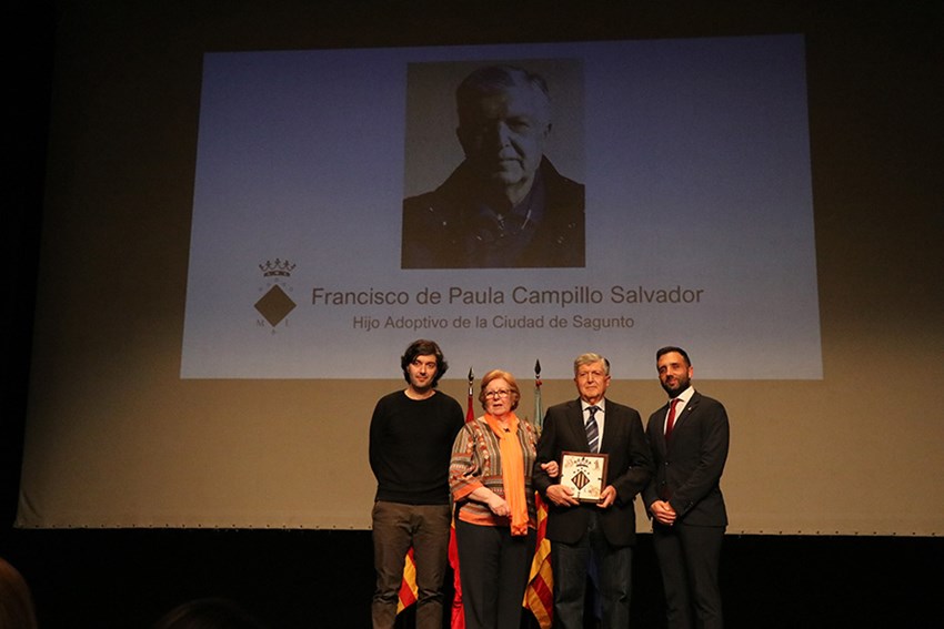 Francisco de Paula Campillo Salvador, que residix a Sagunt des de fa més de 55 anys i s'ha dedicat intensament a tasques socials i empresarials en l'àmbit de l'agricultura comarcal, va ser homenatjat ahir al Centre Cultural Mario Monreal amb motiu del reconeixement de Fill Adoptiu de la Ciutat de Sagunt. En l'esdeveniment va actuar també un grup de cambra.