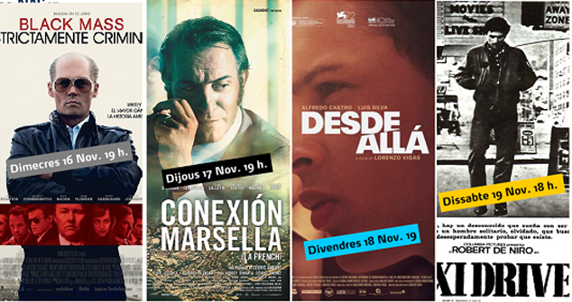 Mientras tanto, dentro del ciclo cinéfilo del festival “Novembre Negre”, continúan las proyecciones del mejor cine negro de la temporada con Black Mass, Conexión Marsella y Desde Allá, el miércoles 16, el jueves 17 y el viernes 18, respectivamente, y la celebración del 40 aniversario de “Taxi Driver” (Martin Scorsese, 1976) con su proyección el sábado 19. Además se pueden visitar dos exposiciones instaladas en el Casal Jove: “Falsificadores famosos: Fakes, pasta y anarquía” y “Cine Negro y Boxeo: Más dura será la caída”.