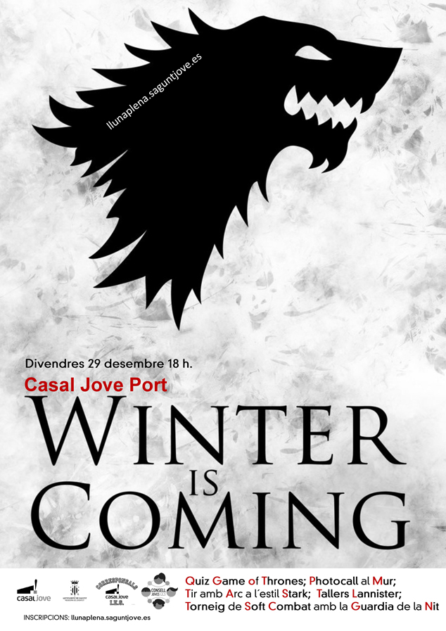Sota el títol ‘Winter is coming to the Casal’, el local jove del carrer Vent de Marinada celebrarà divendres que ve 29 de desembre el dia temàtic dedicat a la sèrie Joc de Trons.