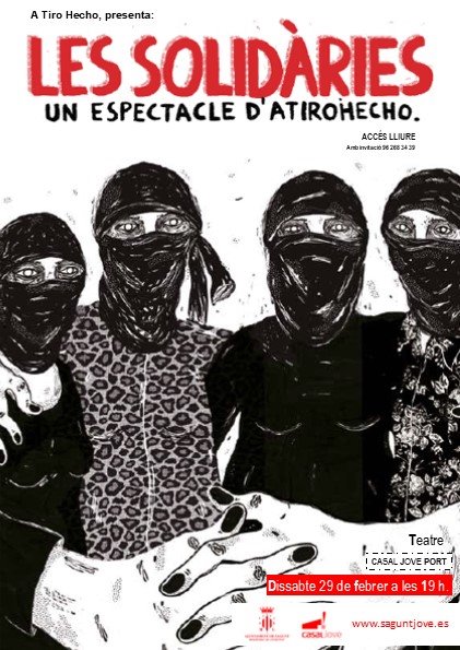 Dissabte que ve, 29 de febrer a les 19 hores, la regidoria de Joventut i Infància oferirà ‘Les Solidàries’ una obra teatral representada per la companyia ‘A tiro hecho’. Amb autoria de Patrícia Marró i dirigida per Carla Chillida, l'obra declara que la pròxima revolució que toca ‘serà feminista o no serà’. Un punt de partida trencador que no desitja reivindicar res. Anhela construir un món nou en el qual el sistema patriarcal fallit i corrupte no tinga cabuda. Una lluita anarquista de les dones en rigorosa estrena.