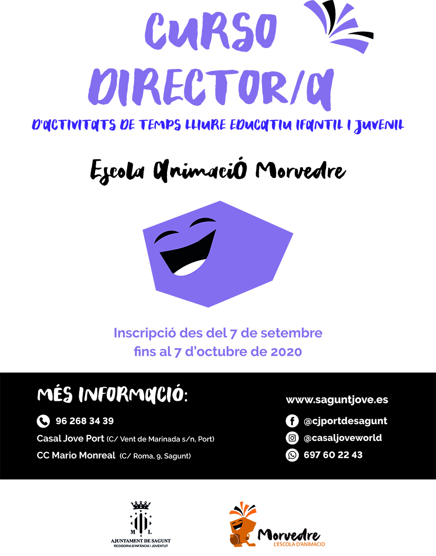 D’altra banda, el curs de director/a és un curs de nivell superior per coordinar, dirigir i planificar projectes d'educació en temps lliure i per al qual es requerix tindre el curs de monitor o equivalent. Es realitzarà els dissabtes entre el 17 d'octubre i el 27 de març i es tracta d'una titulació similar a la d'animador juvenil.