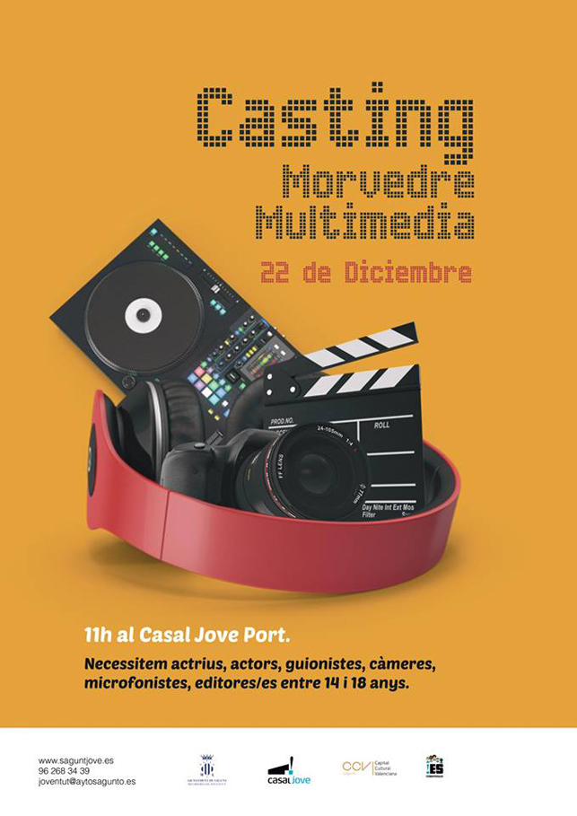 La regidoria de Joventut, junt amb els i les corresponsals dels centres d’educació secundària de Sagunt, posaran en marxa una nova temporada de la websèrie de Morvedre Multimèdia. Per a això, han organitzat una primera reunió a mode de càsting que tindrà lloc el pròxim dissabte, a partir de les 11 hores en el Casal Jove del Port de Sagunt per a totes les persones interessades a participar-hi. Està dirigit a jóvens d’entre 14 i 18 anys, i es pretén rodar una sèrie d’episodis a manera de curtmetratges per a tractar, des de les noves tecnologies, les temàtiques que preocupen al món de l’adolescència.
