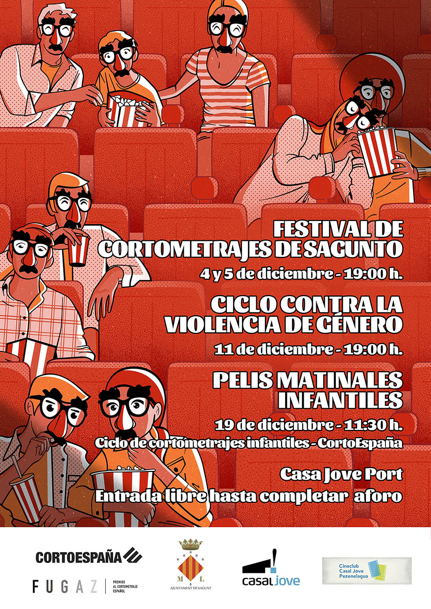 La Delegació de Joventut de l'Ajuntament de Sagunt ha programat un variat cicle de curtmetratges per als pròxims tres caps de setmana en col·laboració amb CortoEspaña. El Casal Jove oferirà 22 curts amb entrada lliure fins a completar aforament i complint amb totes les mesures de seguretat pel coronavirus. Cada cap de setmana es projectaran obres de diferent temàtica.