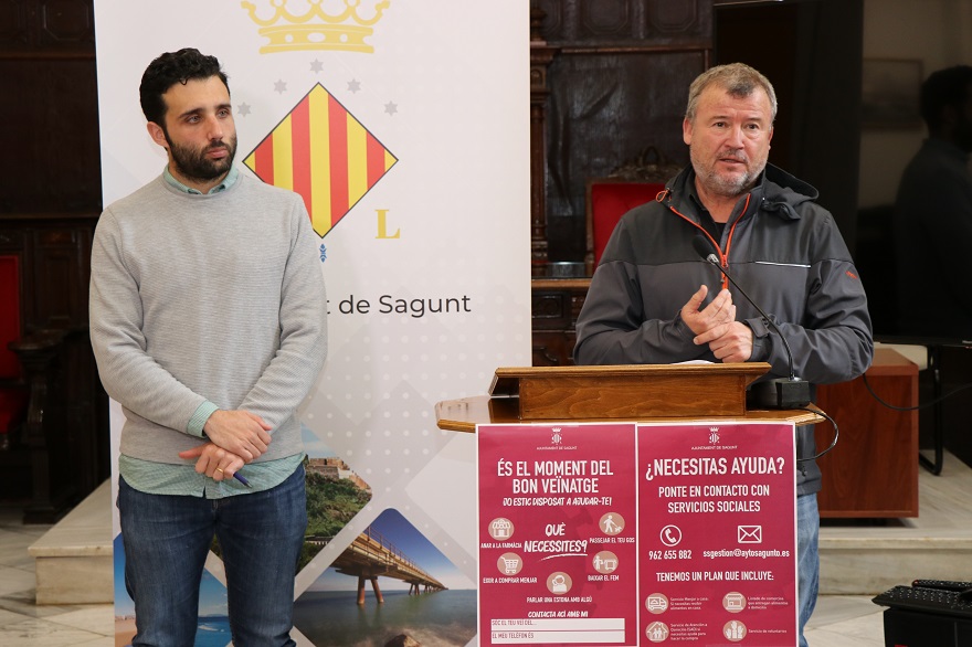 Quant al programa de voluntariat, Moreno ha assegurat que Sagunt ja compta amb 225 persones voluntàries i que ja s'han prestat més de 70 servicis des de la seua posada en marxa. L'alcalde, a més, ha animat a la col·laboració veïnal en les comunitats de veïns i per a això l'ajuntament distribuirà cartells en els quals les persones que vulguen ajudar als seus veïns i veïnes més necessitats puguen apuntar les seues dades i d'esta manera fomentar el voluntariat entre les mateixes comunitats de veïns.