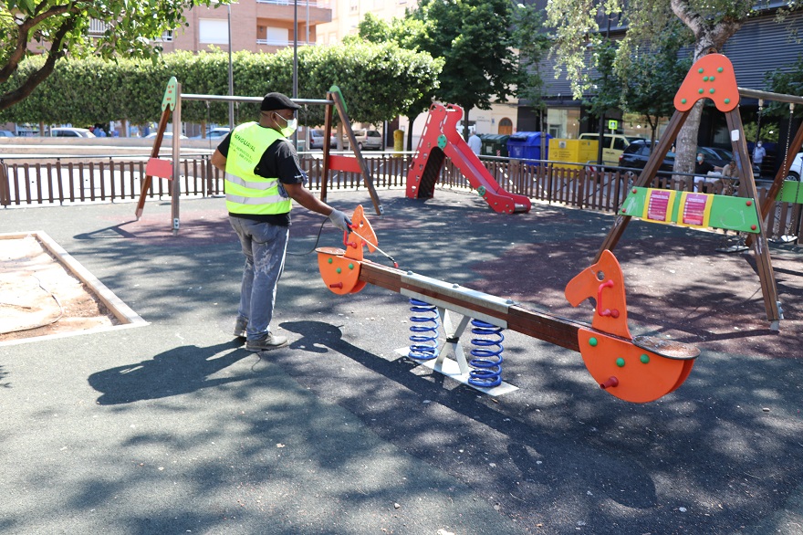 L'Ajuntament de Sagunt comença hui amb la reobertura dels parcs infantils. Des de divendres passat, l'empresa Pavasal s'ha encarregat de dur a terme labors de desinfecció en estos espais, fent una neteja a fons després que els parcs hagen estat inutilitzats durant els últims tres mesos pel seu tancament a causa de la pandèmia provocada per la covid-19.