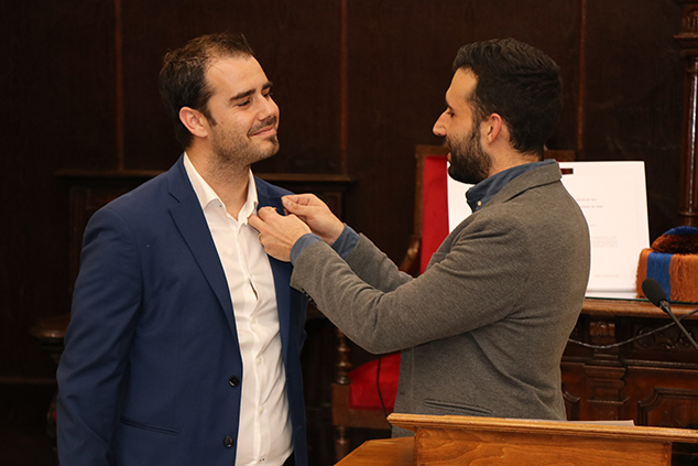Per part de l'Ajuntament i en nom de tota la ciutat, l'alcalde li va fer lliurament d'un pin de la ciutat, «ara seràs ambaixador de la ciutat», ha afirmat el primer edil, «ja que has passat a ser un dels referents de la ciutat i és important donar difusió a la teua trajectòria perquè se sàpia que gent de Sagunt també arriba a estes altes quotes d'excel·lència».