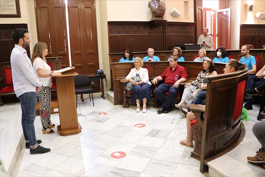 L'alumnat pertanyent al Taller d'Ocupació ‘Impulsant Sagunt’ i la Formació Professional per a l'Ocupació ha sigut rebut este dijous en el saló de plens de l'Ajuntament de Sagunt per l'alcalde de Sagunt, Darío Moreno, i la regidora de Promoció Econòmica i Industrial, María José Carrera.