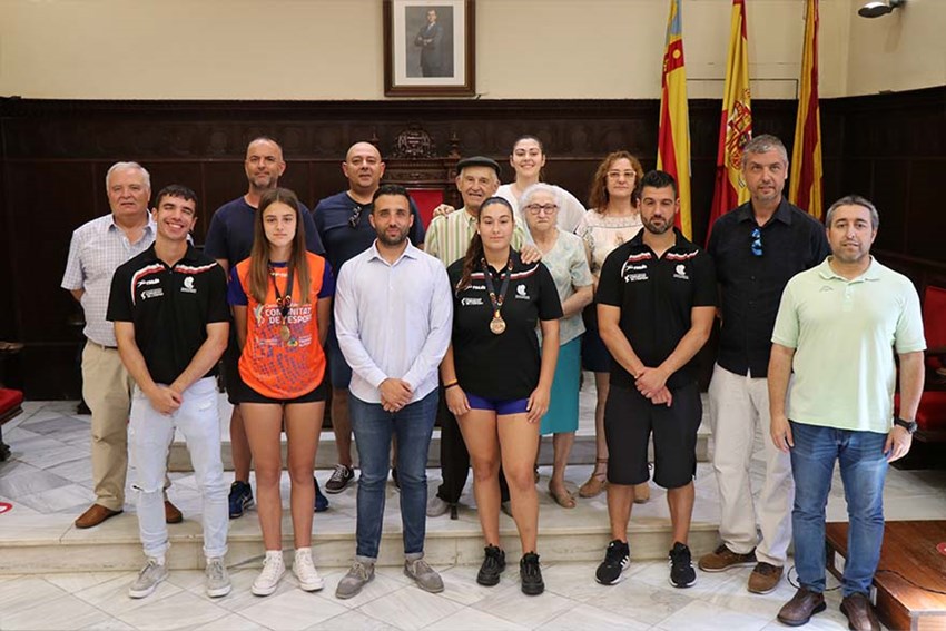 L'alcalde de Sagunt, Darío Moreno, i el regidor delegat d'Activitat Física, Salut i Esports, Javier Timón, han rebut este matí les i els medallistes locals de l'últim Campionat d'Espanya de Seleccions Autonòmiques d'Handbol pels seus recents èxits esportius.