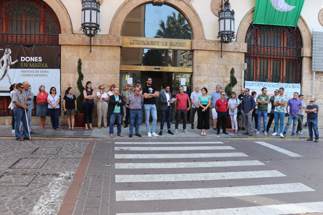 Per este motiu, membres de la Corporació Municipal, del funcionariat, de sindicats, de col·lectius i la ciutadania s'han reunit durant 4 minuts i 15 segons i l'alcalde de Sagunt, Darío Moreno, ha llegit el següent manifest: