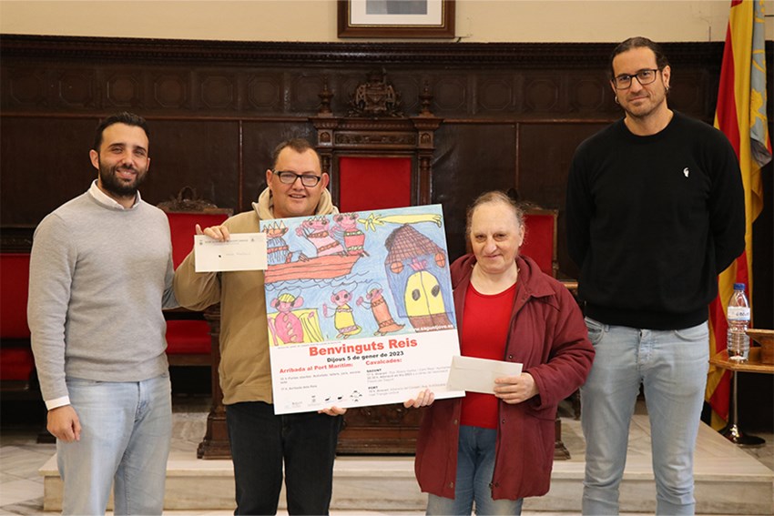 El regidor de Joventut i Infància, Guillermo Sampedro, ha explicat que, com cada any, es llança el concurs de l'elaboració del cartell de la cavalcada de Nadal, «un any el fem amb el Batxillerat Artístic de l'IES Clot del Moro i un altre any, com és este cas, el fem amb els centres ocupacionals de la ciutat, Sant Cristòfol i Socoltie. La veritat és que hi ha hagut molta participació. La guanyadora enguany ha sigut Mari Carmen Martín, a la qual li agraïm el treball tan estupend i el disseny que ens ha fet enguany per al cartell de la cavalcada».