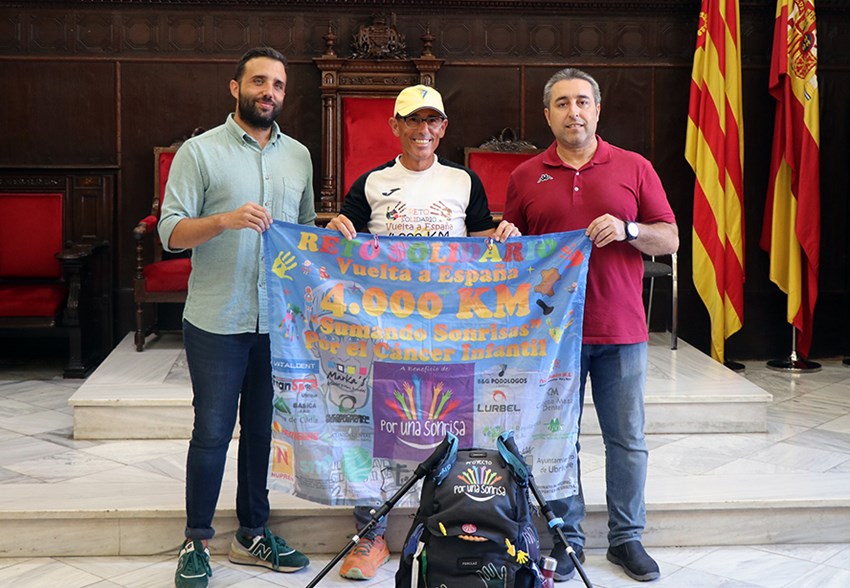 L'alcalde de Sagunt, Darío Moreno, i el regidor d'Activitat Física, Salut i Esports, Javier Timón, han rebut hui a José Antonio Nieto, un caminant que està realitzant la volta a Espanya en benefici de l'associació Por Una Sonrisa, dedicada a la lluita contra el càncer infantil.