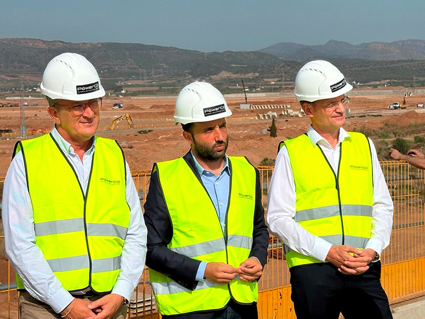 El president de la Generalitat Valenciana, Carlos Mazón; l'alcalde de Sagunt, Darío Moreno; el conseller de Medi Ambient, Infraestructures i Territori, Vicente Martínez; el regidor d’Industria, Toni Iborra; i el CEO de PowerCo, Andreas Rottmann, han visitat este matí les obres a Parc Sagunt II, on se situarà la gigafactoria de PowerCo Spain. En les mateixes la Generalitat Valenciana i Espais Econòmics estan invertint més de 600 milions d'euros per a la seua posada en marxa i en el pol de mobilitat de Sagunt.