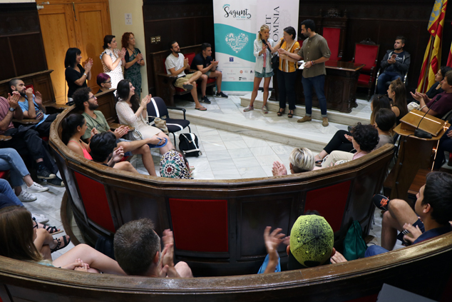 Un total de 32 alumnes de diferents nacionalitats (6 de Bèlgica, 6 de Geòrgia, 5 de la República Txeca, 5 del Líban, 5 d’Azerbaidjan i 5 d’Espanya) visiten estos dies Sagunt gràcies al programa europeu d’intercanvi Erasmus +. L’alcalde de Sagunt, Darío Moreno, i la delegada de Turisme, Natalia Antonino, han rebut l’alumnat al Saló de Plens del consistori abans de fer una visita pel centre històric de la ciutat en què col·labora la delegació de Turisme de l’Ajuntament de Sagunt. Esta iniciativa ha partit de l’associació cultural Vincit Omnia del Port de Sagunt i, a banda de la delegació de Turisme, també hi han col·laborat d’altres com ara Cultura, Joventut i Esports cedint espais per a la realització d’activitats. D’altra banda, la Fundació de la Comunitat Valenciana de Patrimoni Industrial i Memòria Obrera del Port del Port de Sagunt els oferirà divendres una visita guiada pel Forn Alt nº2 .