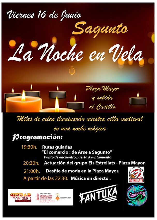 Este esdeveniment s'inicia amb 'El comercio: de Arse a Sagunto', unes rutes guiades pel centre històric del municipi el punt de trobada del qual serà la porta de l'Ajuntament. La programació musical de la plaça Major d'enguany inclou l'actuació del grup infantil Els Estrellats a les 20.30 hores. Una vegada acabat este concert, es celebrarà una desfilada de moda a les 21 hores. I a partir de les 22.30 hores també es podrà gaudir de la música en directe de Fantuka i Jamaleonics.