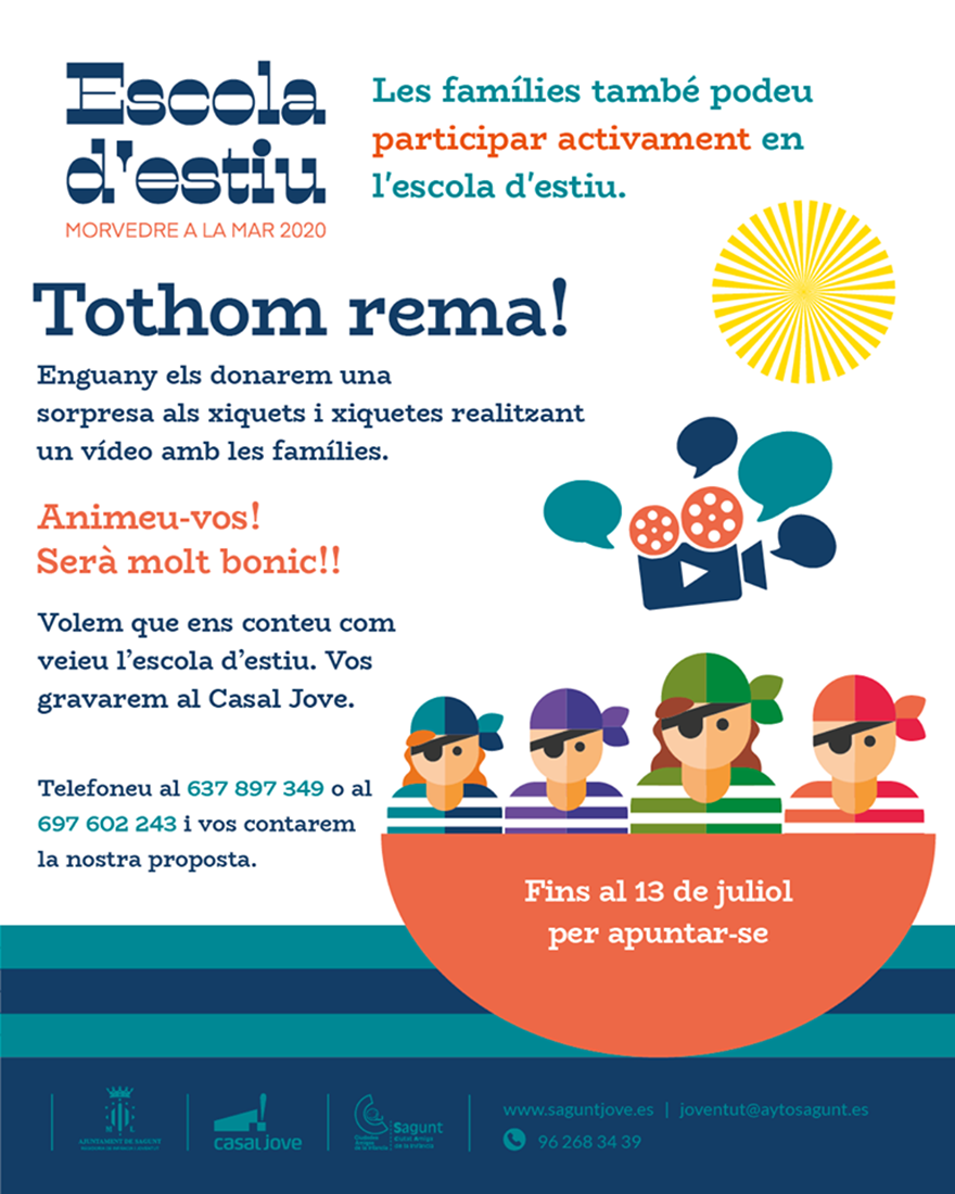 L’Escola d’Estiu, un dels principals projectes de la regidoria de Joventut i Infància de l'Ajuntament de Sagunt, ha llançat dos iniciatives per a generar comunitat, involucrar les famílies i tindre un efecte multiplicador més enllà de les aules i els patis dels col·legis en què s'està celebrant durant juny i juliol. Per això, enguany, des del departament, s'ha posat en marxa dos iniciatives pensades en eixa obstinació de sumar complicitats.
