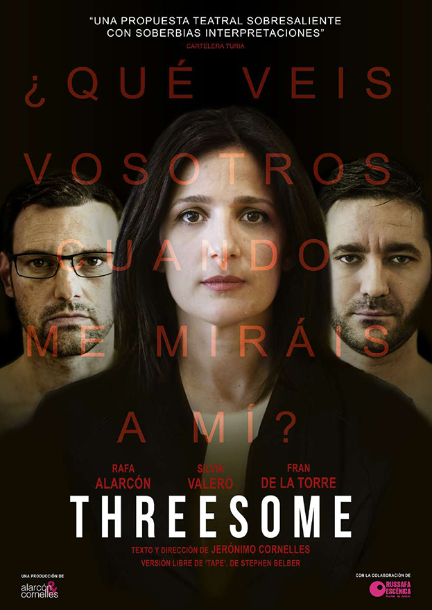 Threesome, de la companyia Alarcón&Cornelles, arriba a la Casa Municipal de Cultura del Port de Sagunt divendres que ve, 16 d'abril, a les 19.30 hores. L'espectacle tindrà una duració de 90 minuts, l'entrada té un preu de 7 euros i està destinada a públic major de 14 anys. Es tracta d'una tragicomèdia negra en castellà.