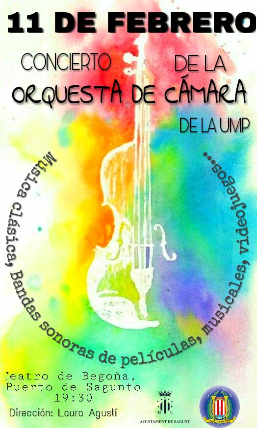 L'orquestra de cambra de la Unión Musical Porteña interpretarà un concert diumenge que ve 11 de febrer a les 19.30 h en el Teatre Begonya del Port de Sagunt. La jove orquestra oferirà un repertori molt variat, que inclou música clàssica, bandes sonores de pel·lícules, musicals i música de videojocs, tot açò a les ordres de la seua directora Laura Amanda Agustí.