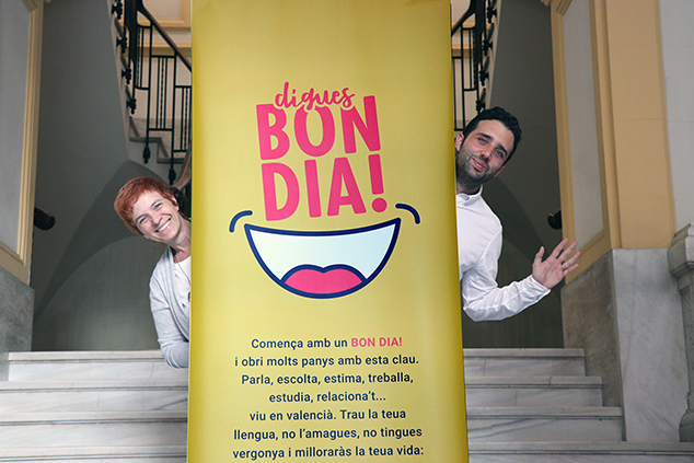 En finalitzar les vacances d’estiu, el Gabinet de Promoció del Valencià continua escampant la campanya de sensibilització Digues BON DIA! que va iniciar al juny. Després d’una primera fase d’expectativa realitzada per les xarxes socials amb una acollida ben favorable, del repartiment de la bossa de l’estiu als mercats municipals i de la difusió en les xarxes de l’enneàleg titulat Saber llengües t’obri moltes portes/Saber lenguas te abre muchas puertas, al setembre es col·locaran en els principals edificis municipals de tota la ciutat unes grans banderoles per tal que el lema de la campanya continue fent impacte en la població.