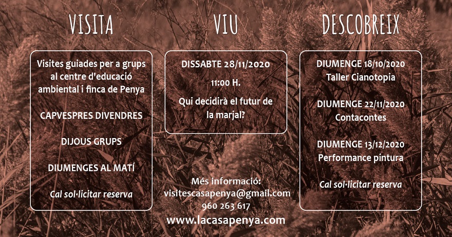 Des de la Comissió d'Educació Ambiental d’AE-Agró esperen que resulten atractives i interessants les diferents opcions que oferixen esta tardor per a visitar, viure i descobrir La Casa Penya amb naturalesa, art, custòdia, capvespres i marjal.
