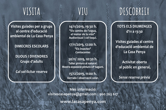 Acció Ecologista-Agró, en col·laboració amb l'Ajuntament de Sagunt, estrena a la Casa Penya el pròxim 14 de novembre, a les 19.30 h, l'obra audiovisual Camins de l’aigua. Un vídeo que analitza el recorregut de l'aigua fins arribar a tres zones humides valencianes de gran valor ambiental: la Marjal d'Almenara, l'Albufera de València i la Marjal de Pego-Oliva.