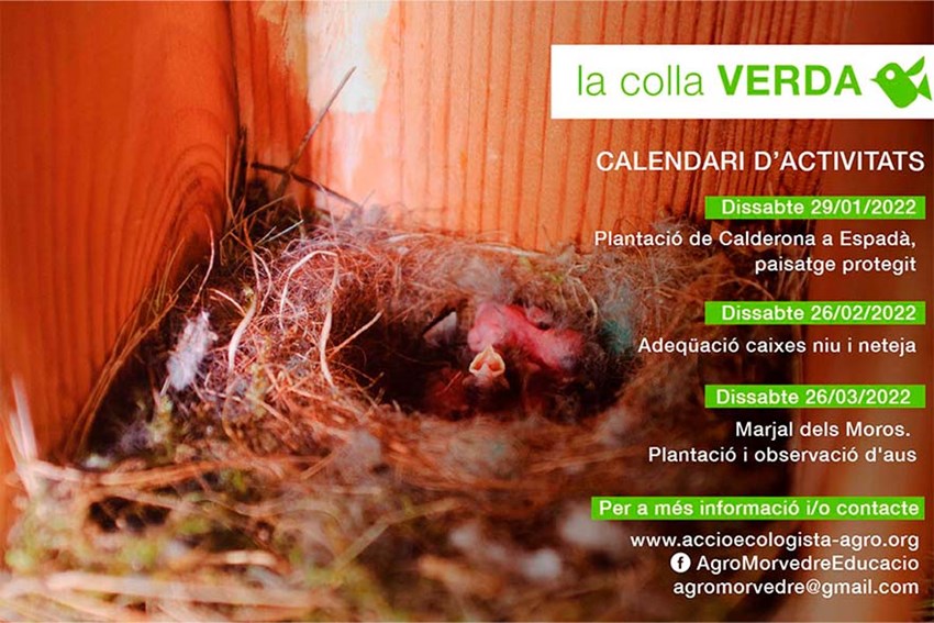 La Colla Verda, el projecte de voluntariat ambiental de l’Ajuntament de Sagunt i Acció Ecologista-Agró, ha programat tres activitats per als mesos de gener, febrer i març.
