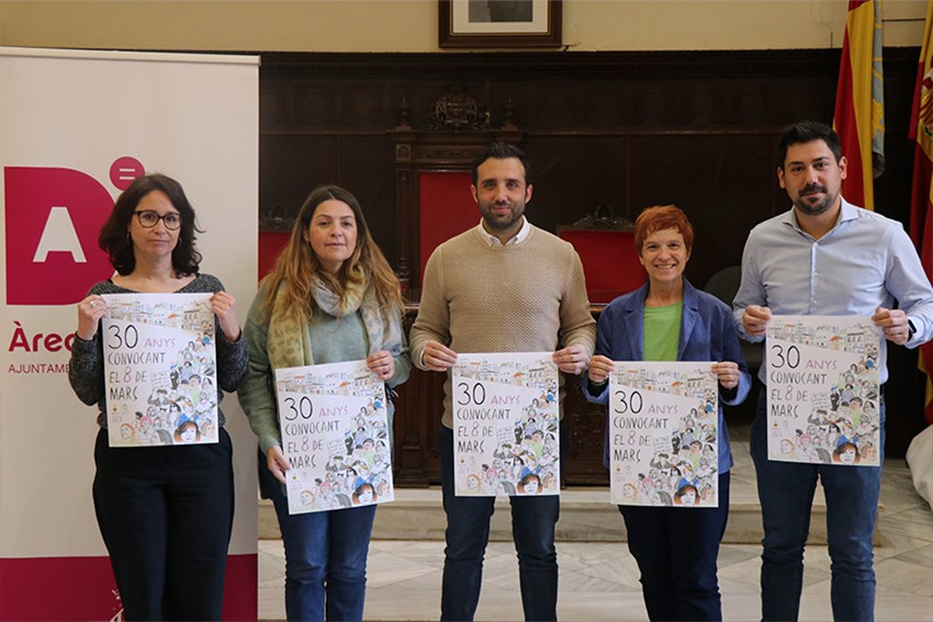 Així mateix, Moreno ha destacat que el cartell d'esta edició «liderarà tot el que és el programa, però sobretot els actes i la voluntat de mobilització popular cap a la igualtat». El cartell habitualment el realitzava el Col·lectiu 8 de Març a través d'un concurs en el qual podia participar tothom, però enguany és el 30 aniversari del concurs i «per tant s'ha optat per parlar amb una artista reconeguda, Ana Penyas, que va ser Premi Nacional del Còmic, per a confeccionar el cartell, amb la voluntat col·lectiva i diversitat, unides per una reivindicació d'igualtat efectiva».