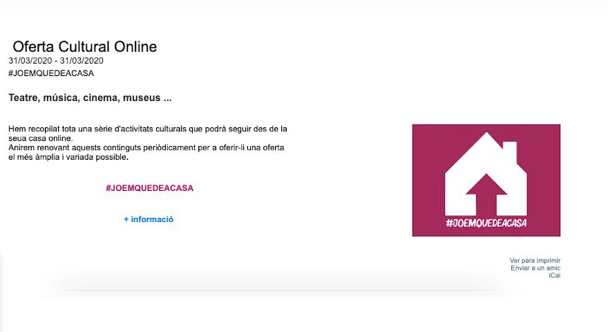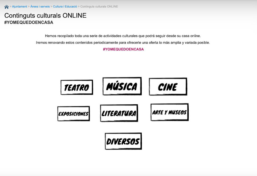El departament de Cultura de l'Ajuntament de Sagunt oferix a la ciutadania una recopilació d'activitats culturals que es podran disfrutar de manera online, mentre que estiga declarat l'estat d'alarma i per tant el confinament de la població. Concretament, els continguts estan disponibles en la secció ‘Oferta Cultural Online’ del portal web de l'ajuntament (