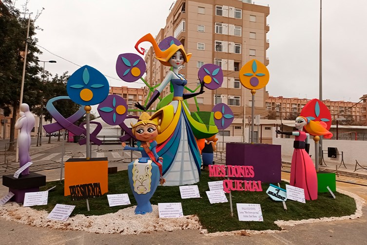 Respecte al monument faller, assenyalen que la figura central és una dona i representa el paper d'estes en el món faller, ressaltant també el llenguatge inclusiu utilitzat en els textos de les escenes.