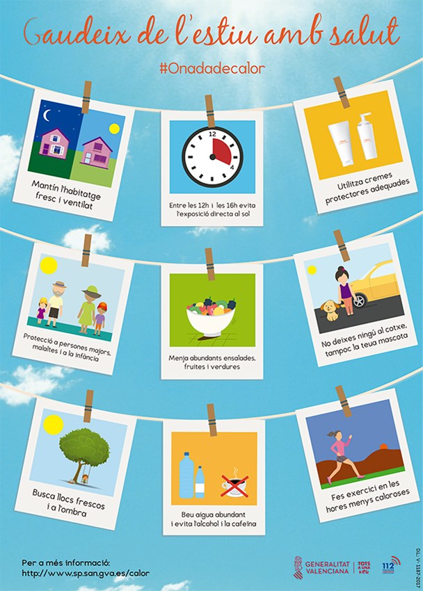 La Generalitat Valenciana ha llançat, un any més, amb la mirada posada en el present estiu 2022, el Programa de Prevenció i Atenció als Problemes de Salut Derivats de les Temperatures Extremes en la Comunitat Valenciana, que s'estendrà durant tota la temporada estival.