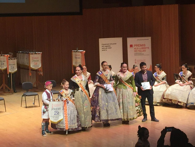 La comissió de Sagunt, així com l'Associació Cultural Falla Na Jordana de València guanyadora del mateix premi en l'àmbit de la ciutat de València, rebran un premi en metàl·lic de 4.000 euros concedit pel servei de Política Lingüística de la Conselleria d'Educació en reconeixement a la promoció del valencià en el llibret d'enguany.