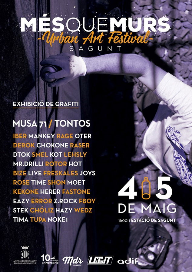 Les activitats d'esta setmana es completen amb l'exhibició de grafiti que tindrà lloc en l'aparcament de l'estació de tren de Sagunt i en el qual participaran més de 40 artistes, la majoria locals i valencians, juntament amb l'artista barceloní Tontos i Musa71, un dels principals referents femenins del millor grafiti wildstyle espanyol. Per a esta exhibició, destaca la col·laboració de l'empresa pública ADIF a l'hora de prestar les instal·lacions i de Montana Colors, la marca de pintures que donarà suport a l'esdeveniment des de les seues xarxes de difusió.