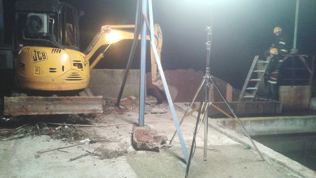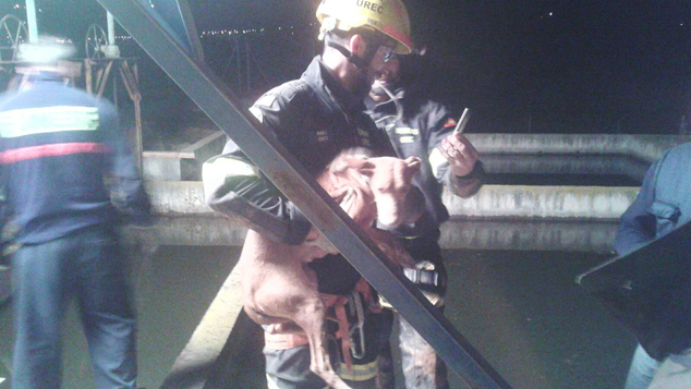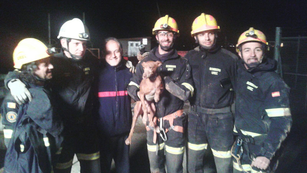 Los trabajos de rescate comenzaron a las 16:45 y finalizaron a las 19:30. El rescate fue realizado por los bomberos y estuvo presente el propietario de la perra.