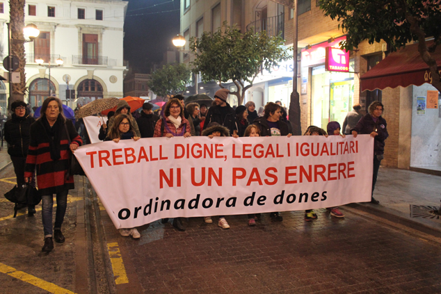 La manifestación, que fue secundada por un centenar de personas, tomó como punto de inicio las puertas del consistorio, recorriendo las principales vías del centro histórico -Camí Reial, plaza Antigua Morería, calle Huertos- y finalizó en la plaza Cronista Chabret con la lectura del siguiente manifiesto: