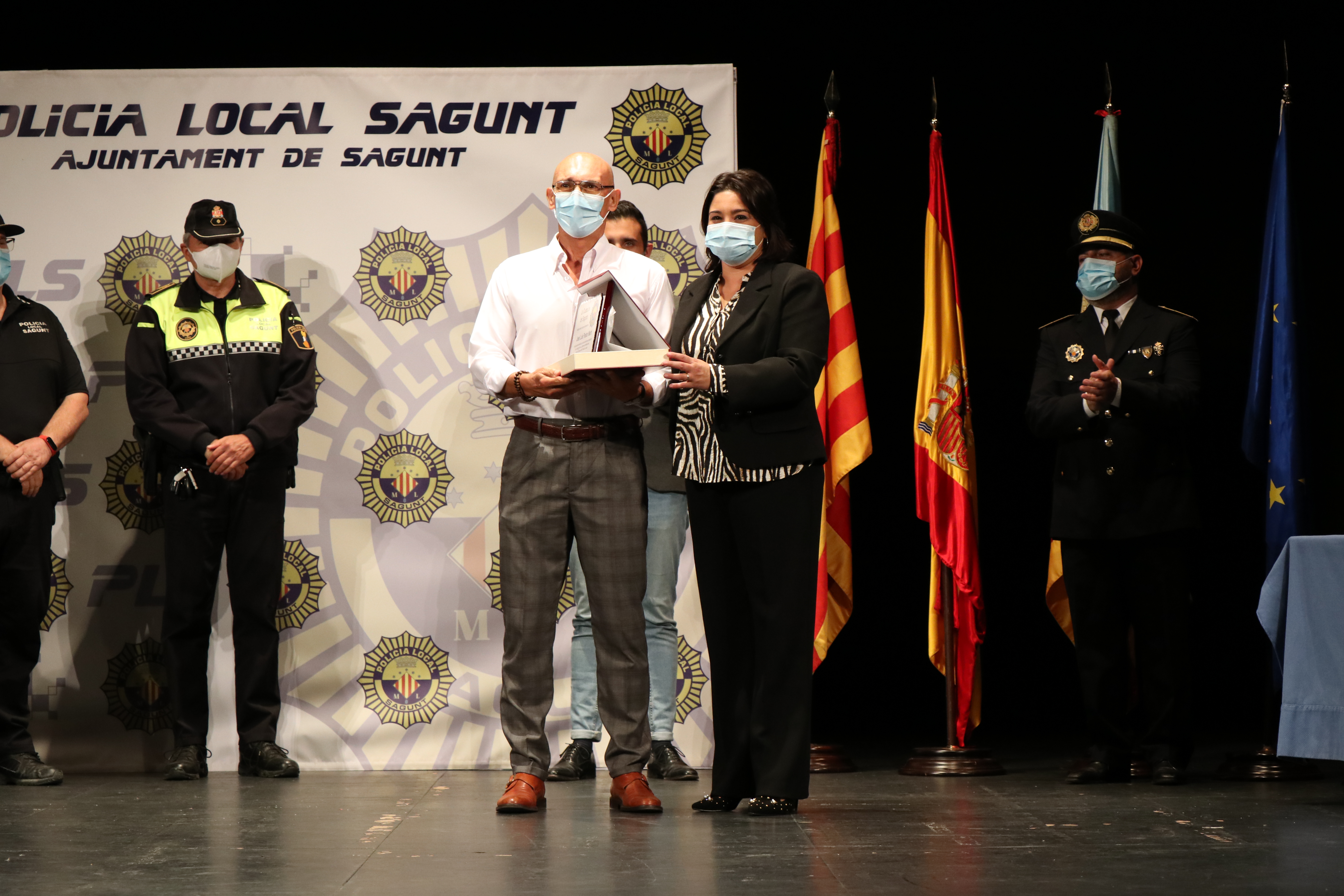 Així mateix, Darío Moreno ha destacat l'exemplar labor que els cossos de seguretat han realitzat en els últims mesos en què s'ha viscut una situació extraordinària provocada pel coronavirus i en la qual, des del primer moment, els agents s'han posat al servici de la ciutadania «sent un far enmig de tanta foscor». L'alcalde ha afegit que cal continuar treballant en esta línia, per part de l'Ajuntament de Sagunt dotant dels recursos materials i humans necessaris perquè els cossos de seguretat presten les seues funcions de la millor manera possible. «Hem de continuar, a més, divulgant la vostra labor i explicant a la ciutadania el paper tan essencial que exerciu. La pandèmia ha posat en relleu que sou fonamentals, i, per tant, hem de continuar invertint en això. Ens esperen per davant mesos en què hem de continuar treballant conjuntament per a oferir el millor servici a la ciutadania», ha finalitzat Moreno.