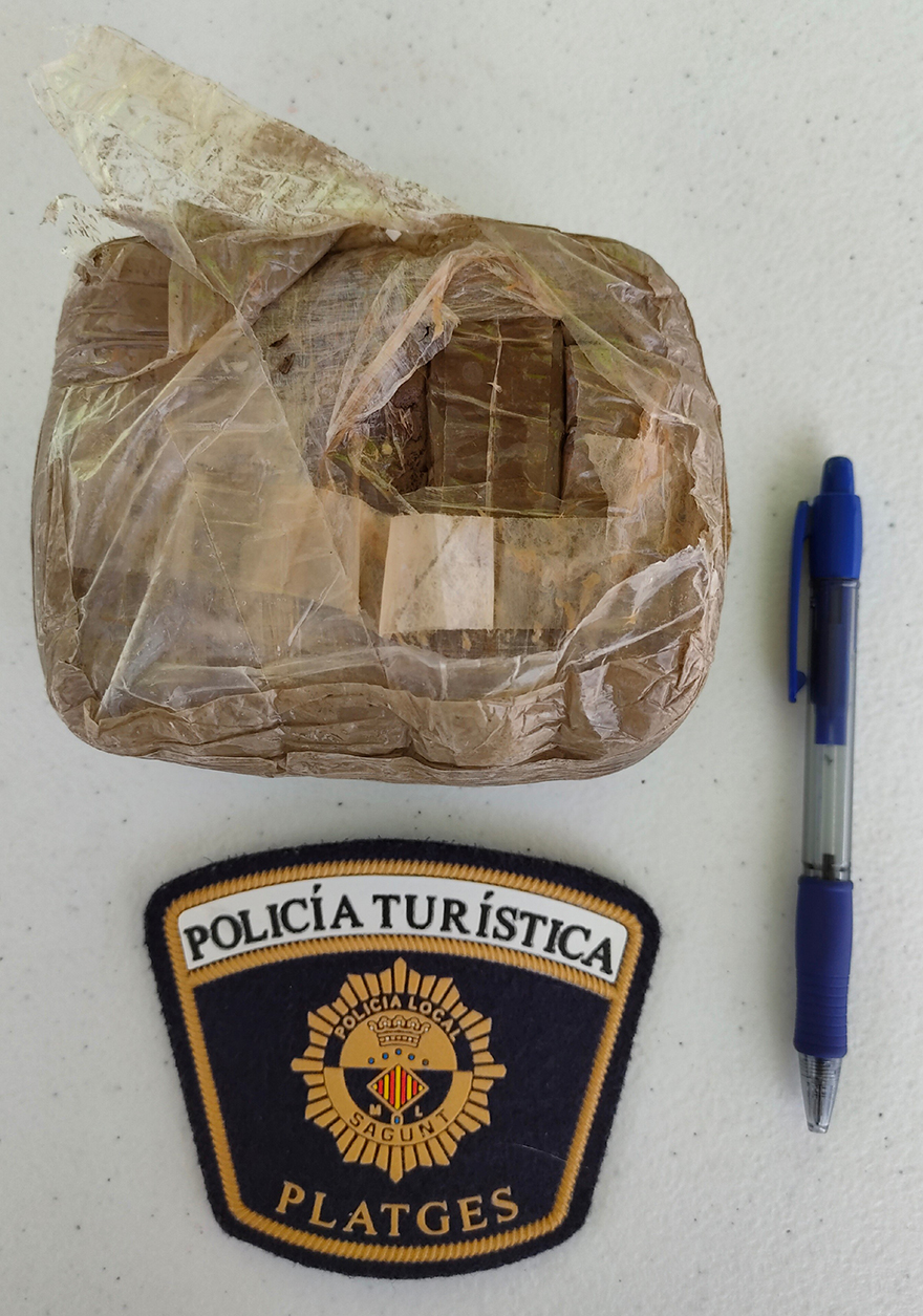 Dissabte passat 1 d'agost, al voltant de les 10 del matí, agents de la secció de platges de la Policia Local de Sagunt van ser alertats pels servicis de neteja sobre l'aparició d'un paquet a la vora de la platja de Corinto. Les seues característiques especials, tant d'embalatge com visuals, van fer pensar des d'un primer moment que es tractava d'algun tipus de droga, concretament haixix.