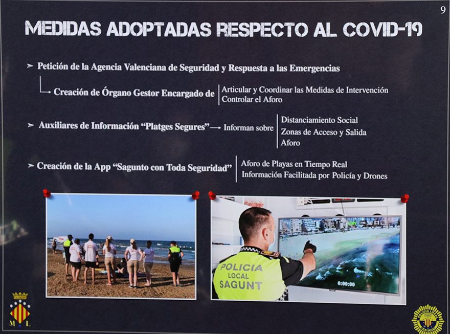 La regidora delegada de Policia Local, Natalia Antonino, ha destacat, en primer lloc, el treball realitzat per tot l'equip de Platges que «ha prestat un gran servici perquè Sagunt torne a ser, una vegada més, un municipi turísticament segur». Des de l'Ajuntament s'ha realitzat enguany un esforç extra perquè tant les platges com els seus accessos i voltants tingueren un estricte control en compliment amb la normativa covid-19, per a la qual es va elaborar prèviament un pla de contingència. Este pla s'ha basat en un reforç de la seguretat, control d'aforaments i comptatge de persones en temps real per a informar els i les turistes.