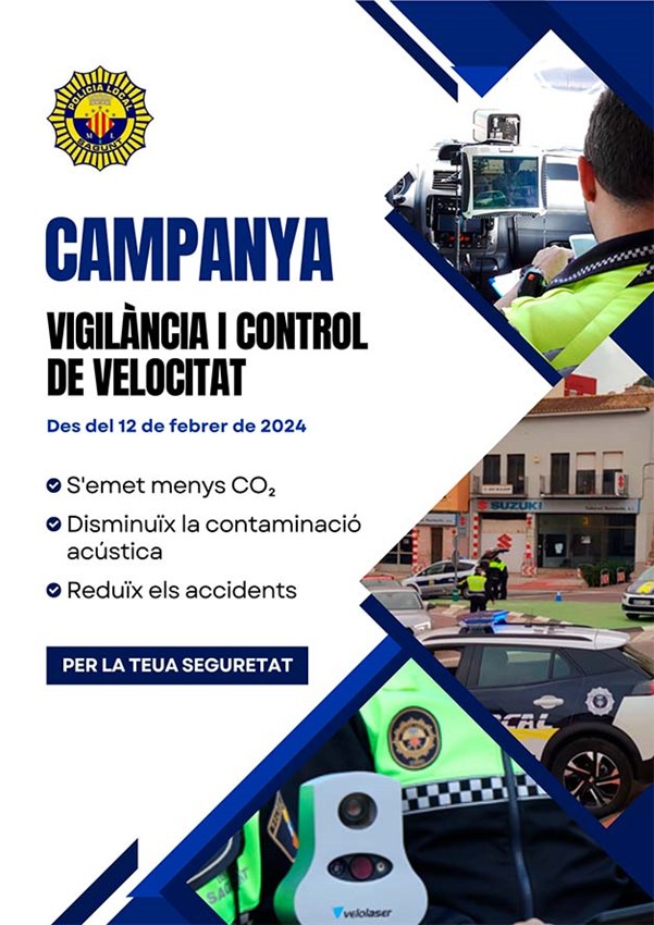 La Policia Local de Sagunt torna a realitzar una nova campanya de vigilància i control de la velocitat, que s'iniciarà dilluns que ve, amb l'objectiu de conscienciar als conductors i conductores que el compliment de la normativa en matèria de velocitat és un benefici per a tots els usuaris i usuàries de les vies i, per extensió, per a tota la societat.