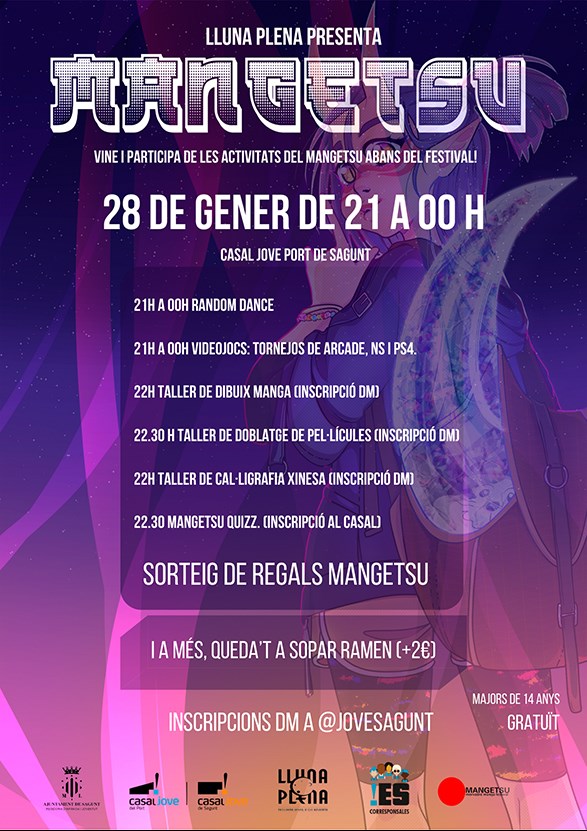 A més de poder gaudir de l’estrena d'estes activitats, durant l'esdeveniment hi haurà un sorteig de samarretes, motxilles i polseres Mangetsu i, per només 2 euros, els i les participants a l'acte podran sopar ramen.