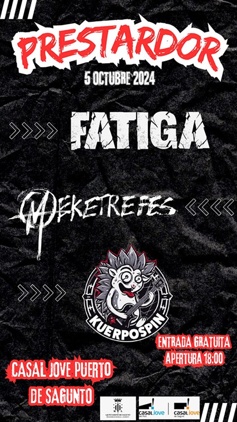 Fatiga, Meketrefes i Kuerpospin són les bandes convidades a este esdeveniment musical gratuït programat a les 18.30 hores en el Casal Jove del Port Sagunt