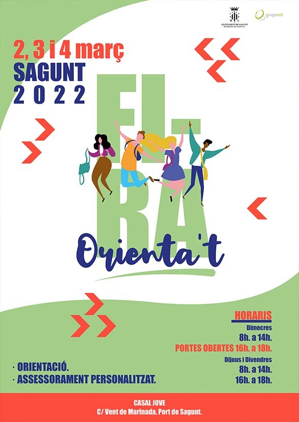 La regidoria de Joventut i Infància de l'Ajuntament de Sagunt, a través del seu Programa d'Informació i Dinamització Juvenil, organitza un any més la Fira Orienta’t, un espai de modalitat d'ensenyament que transcendix els continguts regulars de les classes i va més enllà de les aules, per ensenyar i orientar els i les jóvens quant a la manera correcta d'emprar els seus recursos personals.