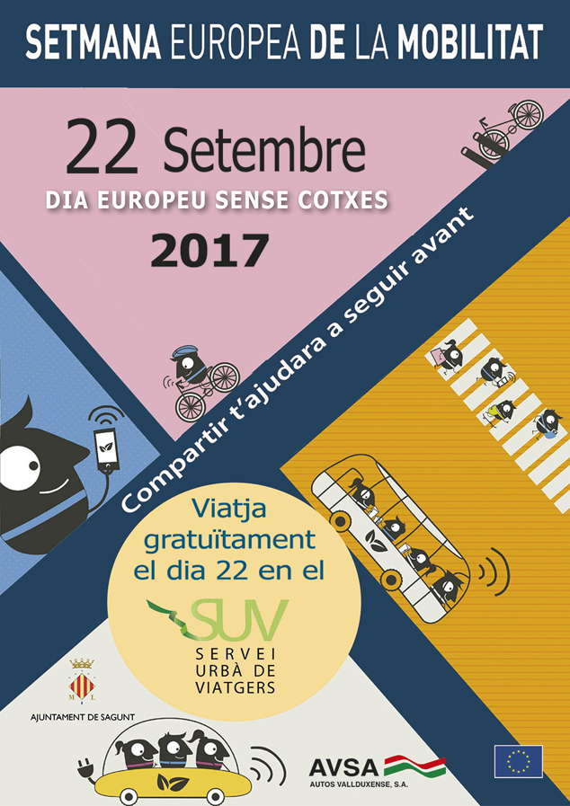 D'altra banda, recordar que demà, 22 de setembre, es celebrarà el dia sense cotxe, en el qual els veïns podran gaudir de l'autobús urbà gratuït. Per la vesprada, a partir de les 19h, el Centre Cívic acollirà la presentació del Pla de Mobilitat Urbana Sostenible de Sagunt (PMUS), així com unes Jornades de Participació Ciutadana en les quals es podran resoldre tots els dubtes sobre este tema.