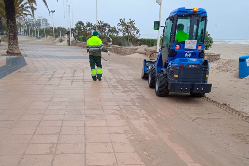 Fa uns dies, l'empresa pública de neteja va haver d'intervindre en el passeig marítim, concretament, en el tram comprés entre la Plaça de la Concòrdia i Ciudadmar, per a retirar les tones d'arena acumulades a conseqüència del fort vent. A esta actuació se li sumen ara els treballs d'evacuació i drenatge després del desbordament del Riu Palància.