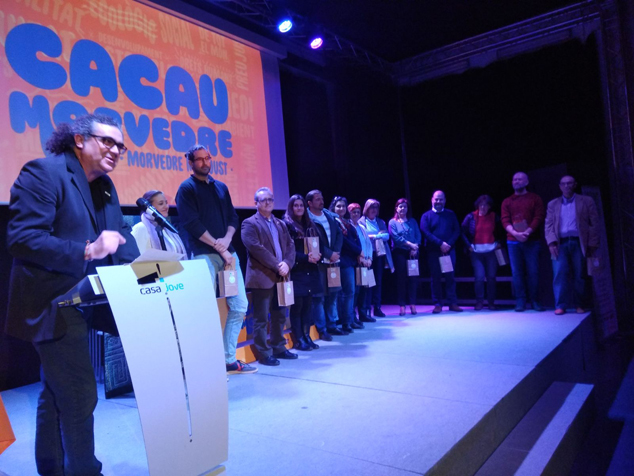 No podia faltar en l'acte l'agraïment que va realitzar Rebeca Torada, de la-tenda, al treball fet pel professorat per l'elaboració d'Unitats Didàctiques per abordar els valors que defensa el Comerç Just en les aules. Les professores M. José Peruga, del CEIP María Yocasta; Ana Pérez i Patricia Martínez, del CEIP Cervantes; i Mariví Gandia, de l'IES María Moliner; i els professors José Vicente Hernández, de l'IES Eduardo Merello; Miguel Ángel Sanlley, del CEIP María Inmaculada, també van rebre el seu obsequi de Cacau i Café Morvedre.