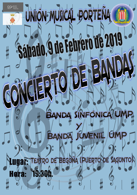 Com cada començament d'any, la Unión Musical Porteña inaugura la seua temporada d'esdeveniments musicals. Així, se celebrarà un concert de bandes dissabte que ve, 9 de febrer, a les 19.30 hores en el Teatre de Begonya del Port de Sagunt. Una obertura de temporada musical molt interessant que està organitzada per la Unión Musical Porteña en col·laboració amb la delegació de Cultura de l'Ajuntament de Sagunt.