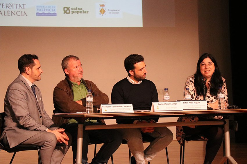 La inauguració de les jornades ha tingut lloc esta vesprada al Teatre de Begoña del Port de Sagunt, i ha comptat amb la presència de l’alcalde de Sagunt, Darío Moreno, el president del Consell Assessor de Patrimoni de la Humanitat de l’Ajuntament de Sagunt, Quico Fernández, la vicerectora de Cultura i Societat de la UV, Ester Alba, el coordinador de la jornada de la UV, Miguel Requena, i un representant de Caixa Popular.