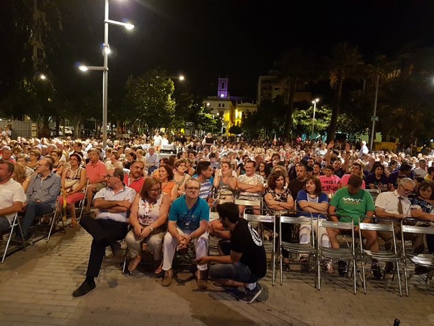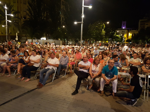 Multitud de persones van acudir a la còmica actuació de Xavi Castillo, incloent a Quico Fernández, alcalde de Sagunt i José Manuel Tarrazona, regidor d'Eduació, Cultura i Promoció Valenciana